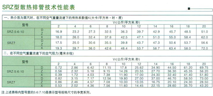 SRZ型散热器参数